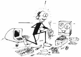 Besides, you don't want to completely separate your kids from the computer. Even preschoolers can be taught the basics of operating a tape drive. After all, they need to know only three commands: CSAVE, CLOAD, and RUN. And they need to know only five buttons: REWIND, PLAY, STOP/ EJECT, and RECORD on the recorder, and RETURN on the computer. I believe it is better to teach the kids how to run the recorder and the computer, and let them load the game tapes themselves.