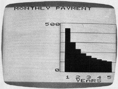 Here's an example that demonstrates a practical use of the bar graph subroutine. Suppose you want to borrow money to buy a car. Checking a reference book on business math, you find that the monthly payment calculation for an installment loan is: