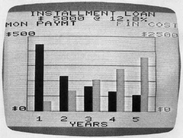 Now we're ready to demonstrate some of these optional features using the car loan example. Program 1 merges the two previous bar graphs (Figures 1 and 2) into one display using two bar colors (see Figure 6).