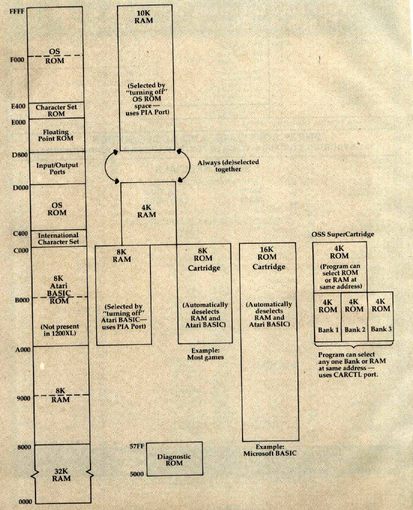 Memory Map Of Atari XL Computers (Showing Parallel Memory Banks At Same Addresses)
