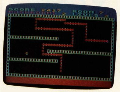 The object of all versions of "Worm of Bemer" is to safely guide Nerm the Worm through 11 levels, or rooms, to his home. Each room, of course, offers a different arrangement of obstructing walls. To advance from one room to another, you must eat five magic mushrooms. If you bump into a wall or into your own trail along the way, you lose a life. Fortunately, you have four lives. Every third room, you are awarded another life.