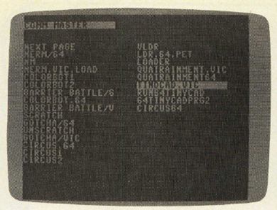 Since menus are the standard solution for friendly programs, it is natural to write a menu program that will: present the user with the choice of programs; allow for the selection of a program, usually by number; and then load the program. Problems with this approach include the updating of disks every so often and typing all those names into DATA lines.