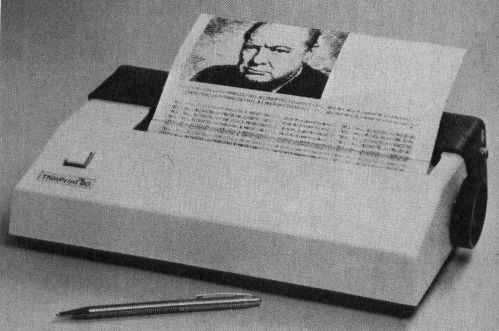 | Alphacom 81 | Alphacom, Inc. | Parallel and serial cables available; also Commodore, Atari, TI, Apple | Thermal | 80 cps | 10 cpi | One line | Yes | 8¾ | Friction | $169.95 | Price does not include interface | |