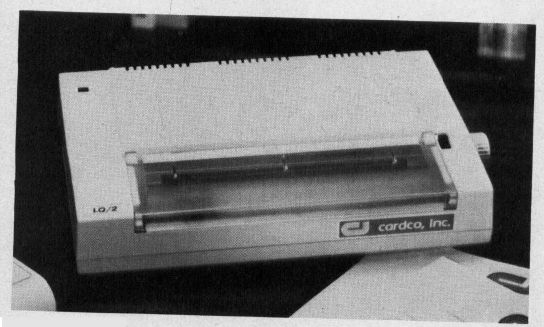 | Cardco LQ-2 | Cardco, Inc. | Parallel standard; built-in interface for Commodore computers | Impact (daisy wheel) | 12–20 cps | Max. 80 cpl | Yes | 80 characters | Yes | 8.7 | Friction | $349.95 | Can run on optional battery pack |