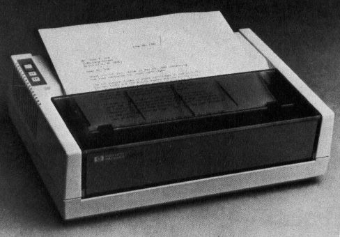| Thinkjet (HP2225) | Hewlett-Packard | Parallel, HP-1B, and HP-IL available | Ink-jet | 150 cps | 40-142 cpl | Yes | 1000 bytes | Yes | 9.5 | Pin and friction | $495 |