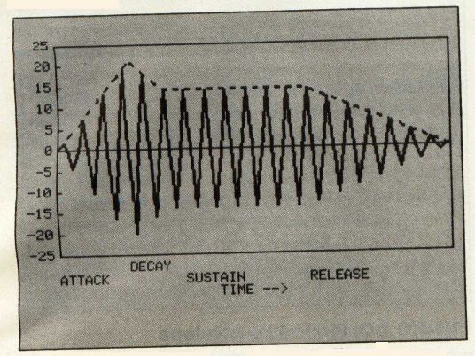 Not all sounds have this four-part volume envelope. Some have only an attack and release phase, and some (like the organ) have only the sustain phase. We can achieve all these on the Commodore 64 simply by setting the other phases to zero.