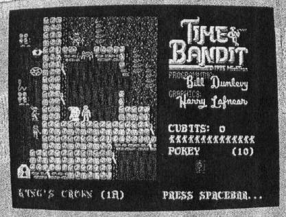 This is one of several new Atari ST entertainment programs from Michtron, and it's an excellent action game with great depth of play. There are 16 different arcade levels within 16 lands you'll explore—more than 3,000 screens in all. Three adventure games are a part of the arcade levels, also. The detailed color graphics smoothly scroll in all directions, and a special two-player twin-screen mode gives Time Bandit even more playability.