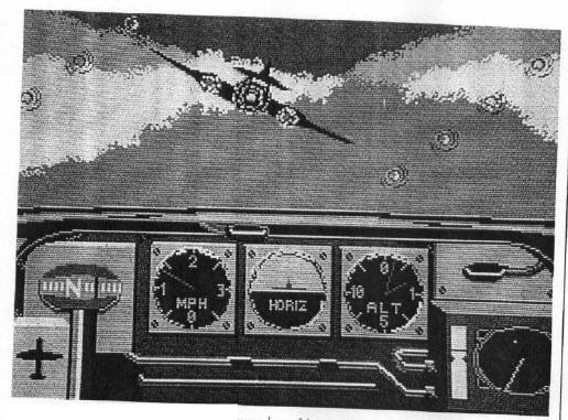 This World War II aerial-warfare game for the Commodore 64 features excellent color graphics and sound effects. You're in the pilot's seat, flying an RAF Mosquito over Europe in one of four different air battles. Each of the battles requires special weapons, battle, and navigation skills. To become an ace of aces, you have to successfully complete all four missions. There are five views from the cockpit, and you use them all to battle enemy fighters and bombers, V-1 rockets, German U-boats, and enemy supply trains.