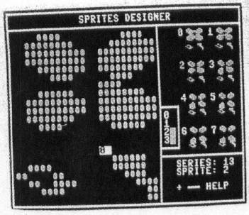 In the upper right portion of the screen you will see the shapes of all eight sprites in the current series. As you design a sprite, the changes immediately appear in this area.