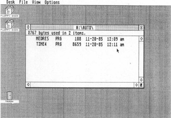Once you have set up the disk, press the reset button to try it out. The disk drive spins as MEDRES.PRG loads and executes, then the other program or programs in AUTO will load and run. If you do not get the expected results, reread the instructions carefully and make sure you have set up the AUTO folder as indicated.