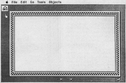 For our application, I started with an existing background template consisting of a frame and four buttons. These buttons came preset with the ability to go to the home stack, to advance or go back one card at a time, and to go to the first card in the stack. See Figure 2.