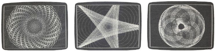 Let's create a picture. First, select Pause to freeze the drawing pen. Now select Clear to erase any picture that might be on the screen. Select Color Control and pick a color. Now select Radius Control. Type 30 at the first prompt, 8 at the second. Select Continue, and a pattern will be drawn. When the pattern begins to repeat, select Pause again and then change the color. Change the radii to 50 and 10. Repeat this process until you're satisfied with your picture. If you wish to save it, select the Save option.