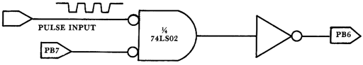 Interface circuit for the pulse-counting program of Table 1. The inverter can be implemented with one of the other gates on the 74LS02 chip. The incoming pulse train must be at TTL logic levels.