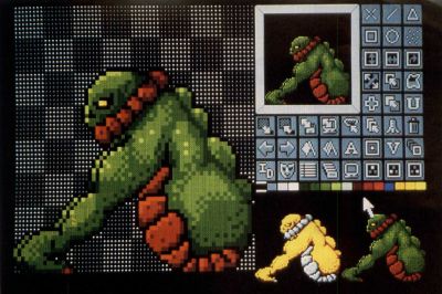 Simple animation is supported by Art Studio. It saves and loads pictures in NEO-Chrome format, thus supporting NEO's color-cycling animation. Sprites can be designed and test-animated from within the program as well. Sprite images are placed in the brush store, in proper order, and can be viewed in movement on the control screen or in front of a work-screen (at an adjustable speed). Defining such a loop is easy, but the sprites must be in order, first to last. The sprite animation is not saved as part of the picture file. But, like the map mode's brushes, sprite data can be saved for inclusion in programs.