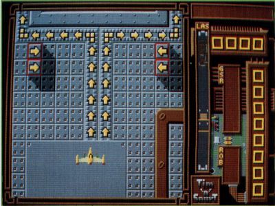Once you've gathered up a number of robots, you must drop them onto "teleport zones," where they will be teleported back to the Ring-Worlds of Triton. When all the robots have either been teleported or destroyed, you must then dock with the mother ship (a simple process), after which you'll advance to the next level.