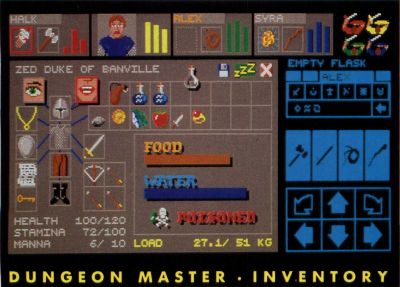 Try to keep your character's loads as light as possible by carrying only the most effective weapons. With only a few exceptions, the weapons in Dungeon Master don't wear out or get broken, so you don't have to worry about carrying spares.