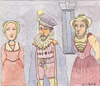 You will see a colorful title and be introduced to the ominous success tune. After a few seconds you will be informed of the game's scenario: You are a medieval detective (if there ever was such a thing) called in to solve a crime of murder at the king's castle. (Turn on that imagination.) It seems that the king invited a group of William Shakespeare's most distinguished characters to a little soiree. During the evening, however, a murder was committed and all of the guests have vowed to clam up unless you, the investigator, guess what is going on.