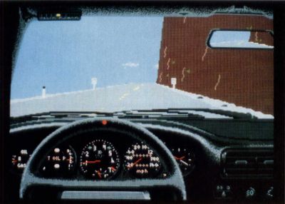 Whether the driver picks the Lamborghini Countach, the Ferrari Testarossa, Porsche, Lotus Turbo Esprit or the humble Chevy Corvette, the cars of Test Drive handle, accelerate and brake like the real McCoy. For the first time in an auto simulation, the player is inside the car, operating the stick shift, turning the wheel and monitoring the fuzzbuster.