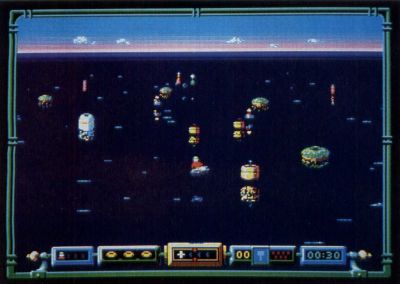 Sprites, which look like large frogs, can only be captured by firing at their island-like hiding places. A successful hit brings one or more sprites out into the open in their various flying and hover-style crafts. The player must destroy the flyers and then swoop near enough to the dazed Sprite to capture it. This game is as difficult to stop playing as it is to explain. Typhoon Thompson is one of the year's most compelling and imaginative action adventures.