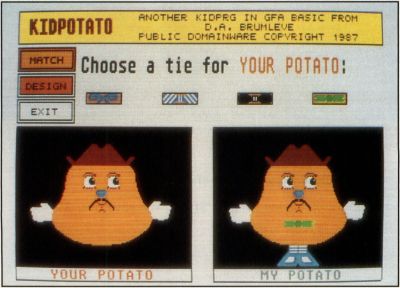 When in my preschool years, Mr. Potato Head was a game all of my friends owned. Several years ago the game was reintroduced and once again gained a degree of popularity. Now Kidpotato, a similar game, is available on the ST, and you don't even need to crawl under the couch in search of that lost ear.
