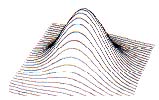 The most common way of drawing 3-D graphs is to plot sections along lines of constant x and or lines of constant y. The graphs can be thought of in two different ways. One approach is to think of the graph as a wire mesh where you can see through the "surface" defined by the function (see Figure 1). The second approach is to consider the graph as a solid object (Figures 2 and 3). In that case, parts of the graph closer to the viewer can hide other portions of the graph.
