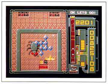 You're not defenseless, though. You have twin wing-mounted laser cannons and occasionally you can pick up a smart bomb. You can control your fighter by mouse, keyboard or joystick, though I recommend the joystick. Your control panel displays a condensed view of the space station, indicating robots, enemy vehicles and your relative position.