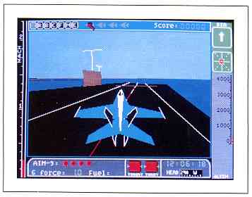 Flying the jets in Jet is difficult, partly be cause it takes about 11/2 seconds before your joystick's input updates the screen. This is unacceptable, especially when dogfighting. SubLogic is known for their realistic scenarios, but when it comes to combat, I don't care how accurate the surroundings are. A wire-frame model would have been adequate and the screen refresh time would have been smoother. But with an increase in screen speed, Jet could be one of the best aircraft simulators ever developed for the Atari ST.