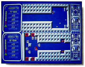 In some aspects, Captain Fizz seems pedestrian. You play the part of one of the "Queen's Cloned Highlanders," charged with the destruction of an evil central computer after 22 levels of battle. The playfield is viewed from overhead and, while it scrolls nicely as you move from one part of a level to another, the graphics are merely good, not spectacular. But the Fizz screen is split horizontally into two views-one for each player-and this and the game concept makes the difference.