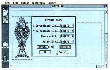Once a bit image picture is loaded into Fleet Street, it can be cropped, rotated in one-degree increments, edited or scaled to any printer. Pictures can be sized automatically or duplicated according to any measurement scheme you desire (points, picas, millimeters, centimeters, inches).
