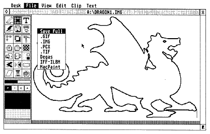 Graphics can be rotated, flipped, mirrored, copied, slanted, masked, outlined and cleaned up automatically. Multiple zoom levels, a resizable working area, a defineable clipboard and one of the slickest GEM interfaces available anywhere all give Touch-Up great power and flexibility.