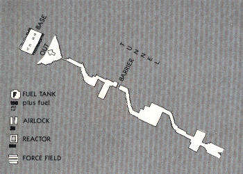 With each of your three "lives" in a game, your fuel tank is refilled. Fuel pods in the tunnel replenish your supply if you can manage to shoot them. This is a crucial skill to master if you ever hope to get as far as the mother ship. The fuel tanks are place at random the tunnel and are worth 150 points, not to mention their fuel. Blasting through an airlock is good for 50 points.