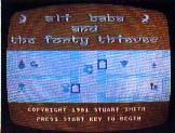 Alas! The lovely Princess Buddir al-Buddour has been kidnapped by a band of cunning cutthroats and merciless thieves, known as the Cogia Houssain, who have for years been stealing the wealth of the land. Now they have boldly stolen the sweet Princess, hiding her away in a secret cave deep in the mountains. You are Ali Baba, the heroic rescuer. In a strange dream, you pursue an obstacle-ridden and dangerous path to the cave, and after many exhausting trials, rescue the gentle maiden. This adventure game uses both keyboard commands and the joy stick to vary the action. Dreaded creatures may block your path, and weapons may be used in combat.