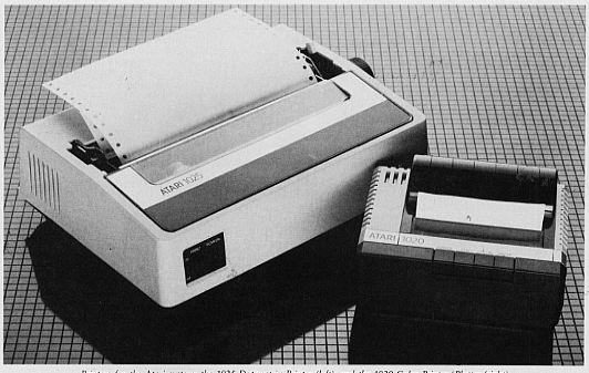Printers for the Atari system: the 1025 Dot-matrix printer (left); and 1020 Color Printer (right).