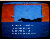 After you type in the game, be sure to SAVE it before you RUN it. The screen will go blank for about 15 seconds for program initialization. Then you will see the final screen that says "Game Over." To play, press the fire button on the joystick in Port 1. You start with one plane and have two in reserve. The ship is constantly in motion. You control its direction and vertical position with your joystick. You can control where bombs land after they are dropped by maneuvering horizontally. The marks at each side of the screen show the minimum height from which your ship can drop bombs. This height is raised with every wave.