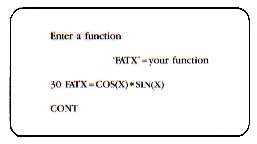 Let's use COS(X)* SIN(X) as a sample function. Here's what the screen will look like: