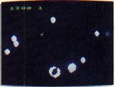 The "glitch" in Asteroids is its Pause mode. You can press the [SPACEBAR] to pause play but if the attract mode kicks in, you can't continue. The pursuit of points in a video game loses all its glamour at this point, but Asteroids is still great, with good sound effects and decent graphics considering its 8K cartridge limitation.