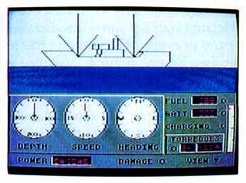 The joystick steers your submarine and controls diving and surfacing. The joystick button launches torpedos. All other controls are operated by the keyboard. This is awkward at first, but commands are mostly mnemonic.