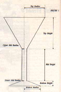 Let's make a simple cocktail glass. Select menu choice 1, CREATE NEW DESIGN, and type the dimensions of the glass, as shown below: