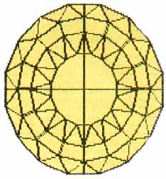 When one level has three-sided panels, the polygon points on the top surface are rotated. If two levels have three-sided panels, the points are rotated back again and a second design can merge with the two-level design. A level can be suppressed by making the radius and height equal to zero. Or one radius can be zero, bringing the polygon to a point. See Figure 1 for examples of the various measurements within a polyhedron.