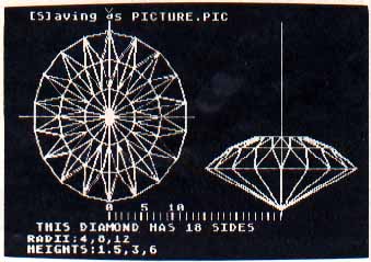 You can save your design as a 62-sector picture file called PICTURE.PIC. These files are compatible with Graphics Master and most drawing programs which accept high-resolution pictures.