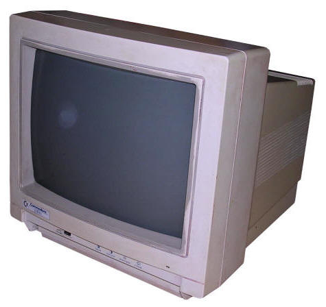 Small monitor used with Amstrad CPC computers. As Amstrad/Schneoder CPC computers have no conventional video output, users were forced to use these monitors or expensive RF modulator units. More, CPCs had no power supply units outside of monitor, so dedicated RF modulators had it built-in too.