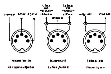 modulator power. WARNING: Tape IN/OUT in some documentation is inverted. Carefully observe on schematic: Connection FROM TAPE to computer is finally going to base of transistor, while FROM COMPUTER to tape goes into resistors ladder and data line (D12?). |