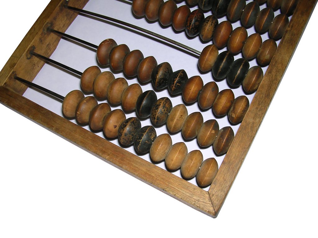 Known as the first calculator, abacus evolved from set of stones placed in carvings, through tables with sliding parts, to different combinations of beads on wires, usually enclosed in a frame. It allows to add and subtract numbers easily, yet multiplication and division is possible by adding the same number or subtracting divisors. Today it's mostly used as maths teaching aid, but in former Soviet Union countries it's still used in many small shops because it doesn't need electricity and can be used very fast by experienced person.