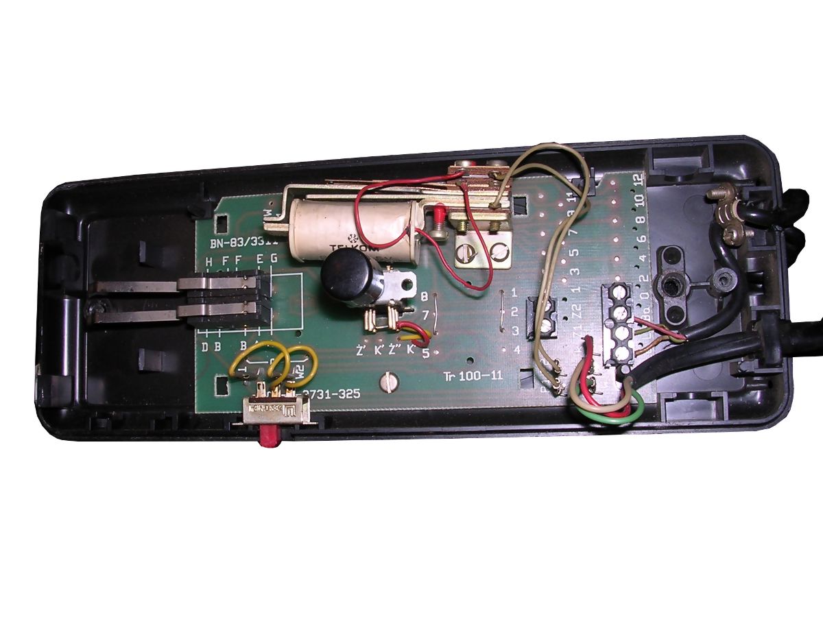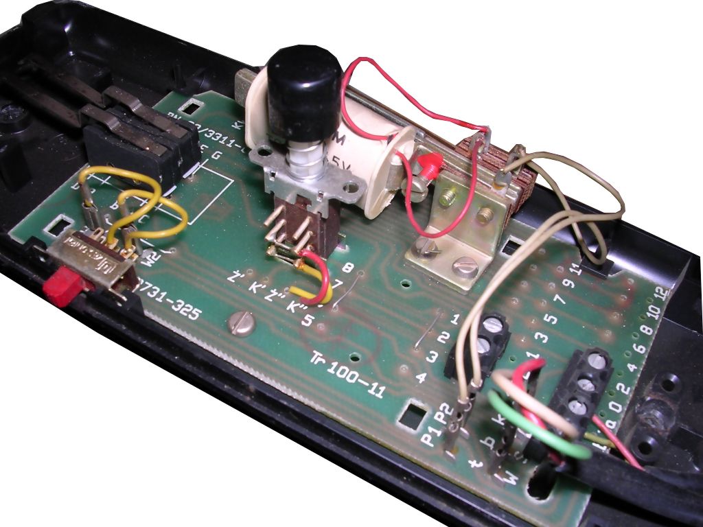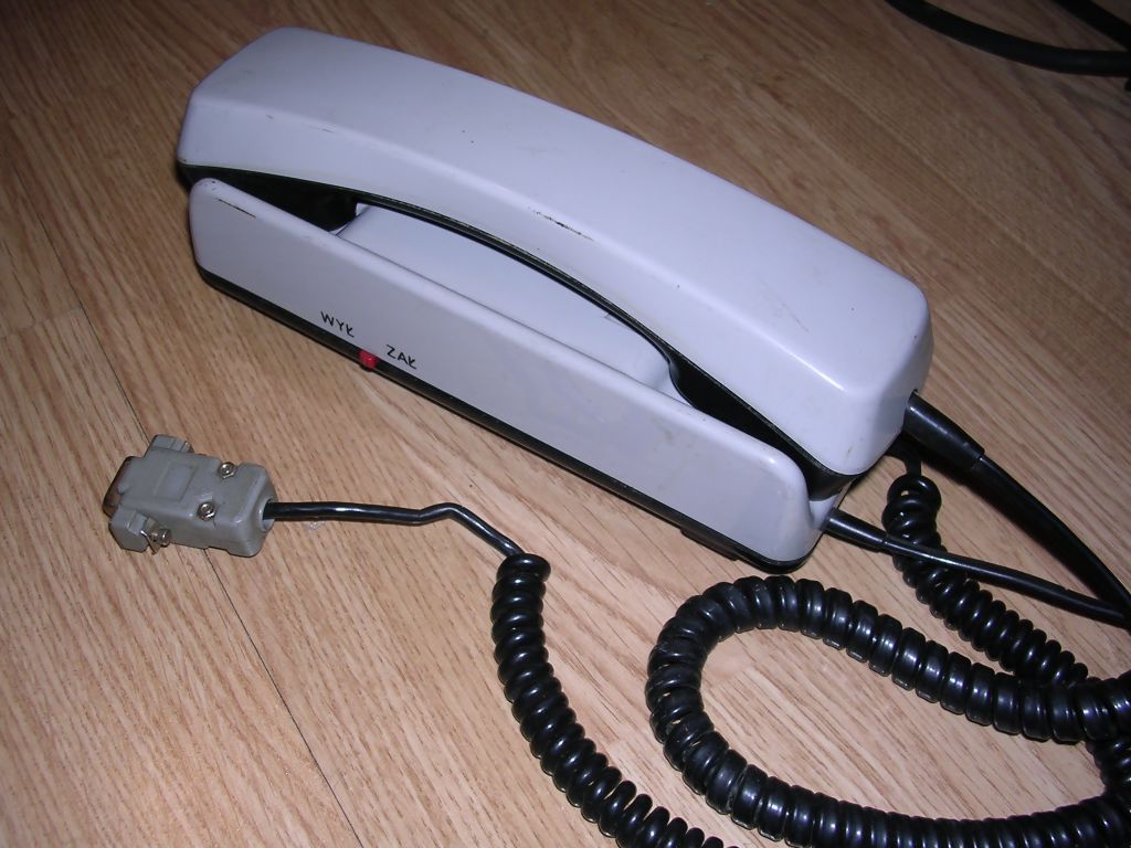 It was not a dedicated handset, but a home door phone made by Telephone factory in Radom - exactly Unifon UK-BM, commonly seen in houses even 10-15 years ago. It was modified by adding a cable with DB9 plug. The unit you can see has been manufactured in 1993. In my unit there is a modification which keeps microphone constantly open (in original door phones mic was shut by placing phone on the hook). It is turned off only when the unit is turned off by a switch located on the side. Maybe it was intentional to do "loudspeaker mode" with PC speaker, or maybe someone just wanted to "have an ear" in his room when absent?