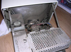 If you have this computer, remember to clean CRT monitor inside. This monitor has a fan built-in, so after few years of operation you may end with something like this:
