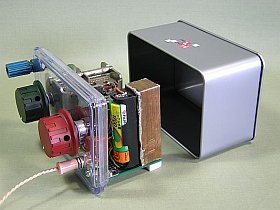 やっと、サイズ的に合いそうなのを見付けましたが、これが金属製。透明なのは蓋だけ。まぁ、外部アンテナなので電波は注入出来るでしょうが、各コイルへの影響(アンテナ側と段間側のアンバランス)などが少し気になりました。(結果は、あまり影響無し)
