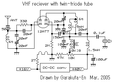 (以前きしもとさんが双3極管単球でどう?・・・と言われていた事もあって)今回、12AT7で超再生式VHF受信機を実験してみました。