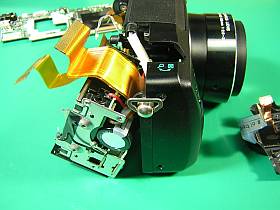 もう、周りはそのままにして、先にCCD基板を外しレンズ部の様子を窺ったのですが、ここも簡単に外せそうにない!