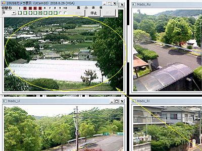 [Qcam Orbit AF(V-UCC22)]3台にこの[Qcam Orbit(QVR-1)]を加えた「4台同時並走」は、可能だと分かった。(図7左上は「QVR-1」からの映像)