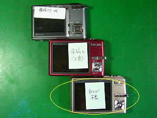 手に入れてから、こうした「レンズ系≒シャッタ不良」で死亡した、或いは既に死んでいたExilimは、これで5台以上。(左写真)